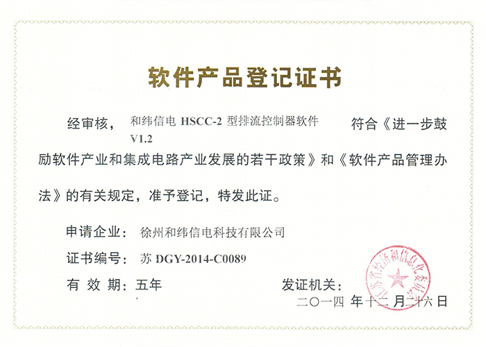 • 10軟件產品登記證書——和緯信電HSCC-2型排流控制器軟件V1.2